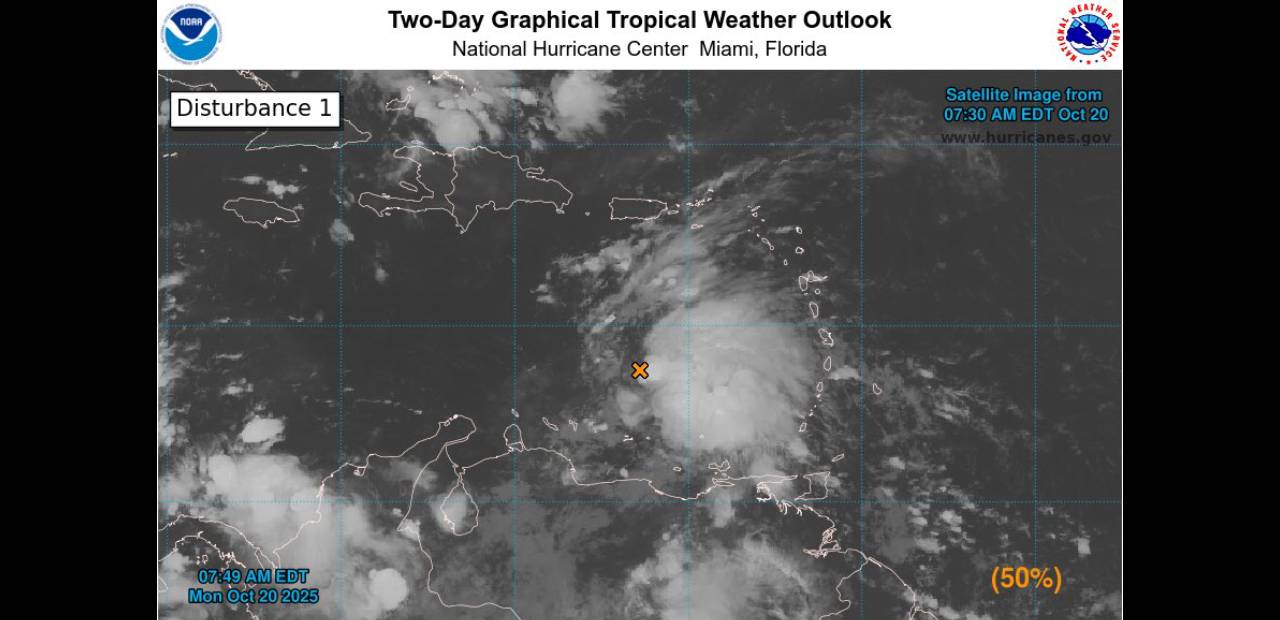 El Centro Nacional de Huracanes (NHC) informó que una onda tropical en el este del mar Caribe presenta una probabilidad del 50% en 48 horas y 80% en siete días de evolucionar hacia un ciclón tropical.