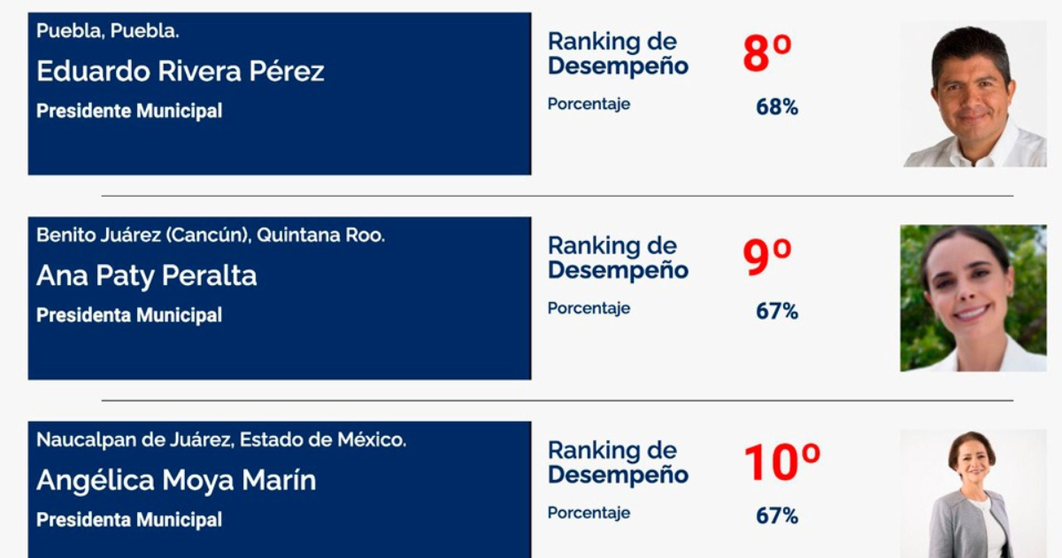 Además, en la lista, Ana Paty Peralta se colocó como la segunda mujer alcalde con mejor posición en la tabla, refrendando su liderazgo y siendo referente del empoderamiento femenino nacional, solo después de Romina Contreras, que preside Huixquilucan, Estado de México.