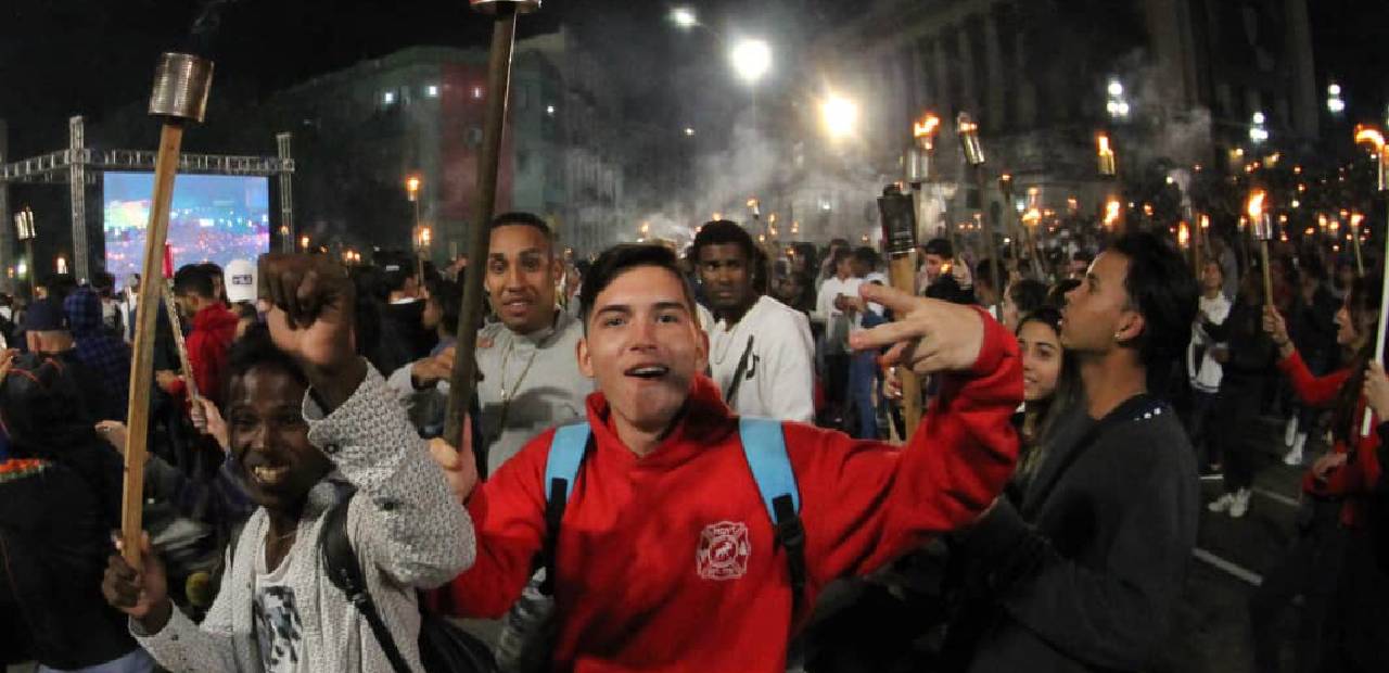 La Habana, Cuba.- La noche de ayer miles de cubanos, encabezados por jóvenes y sectores sociales, marcharon por las calles de La Habana portando antorchas en una manifestación que coincidió con la conmemoración del natalicio del Héroe nacional José Martí y en medio de las amenazas de Estados Unidos hacia la isla.