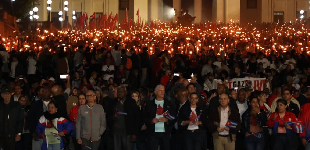La Habana, Cuba.- La noche de ayer miles de cubanos, encabezados por jóvenes y sectores sociales, marcharon por las calles de La Habana portando antorchas en una manifestación que coincidió con la conmemoración del natalicio del Héroe nacional José Martí y en medio de las amenazas de Estados Unidos hacia la isla.