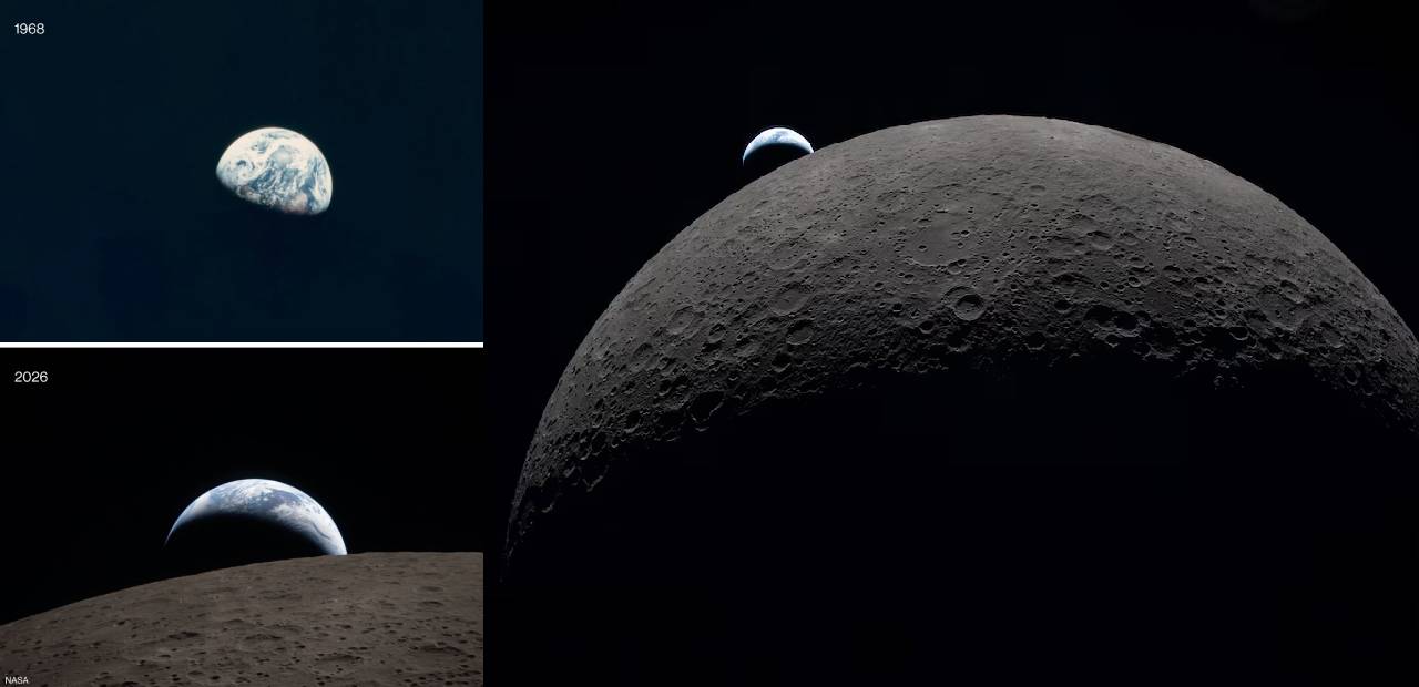 Houston, Texas.- La misión Artemis II de la NASA logró recrear la icónica fotografía del “Earthrise” tomada en 1968 por el Apolo 8, capturando una nueva versión del fenómeno desde la cara oculta de la Luna.