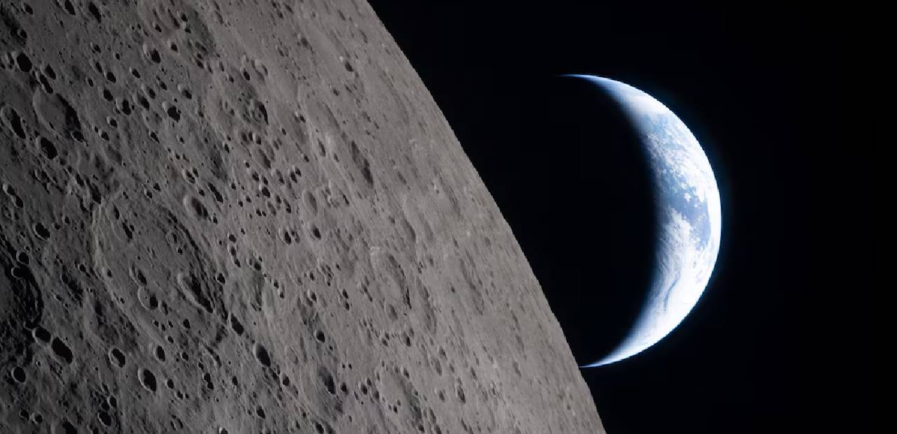La imagen muestra a la Tierra emergiendo, y también ocultándose, detrás del horizonte lumbar, replicando uno de los momentos más emblemáticos de la exploración espacial, ahora con tecnología de alta definición.