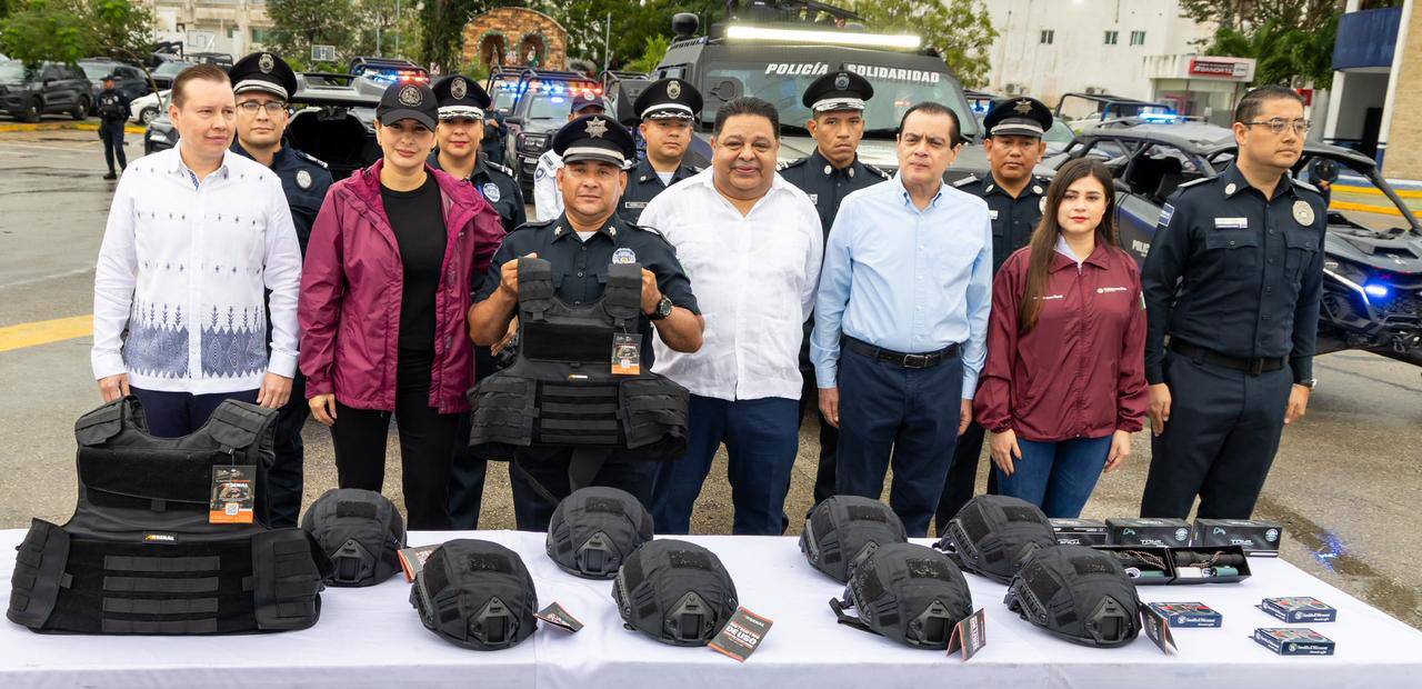 Playa del Carmen, Quintana Roo.- La presidenta municipal Estefanía Mercado encabezó la entrega de uniformes, equipo táctico y cámaras corporales a elementos de la Secretaría de Seguridad Ciudadana Municipal (SSCM), como parte de una inversión superior a los 38,7 millones de pesos provenientes del FORATUM.
