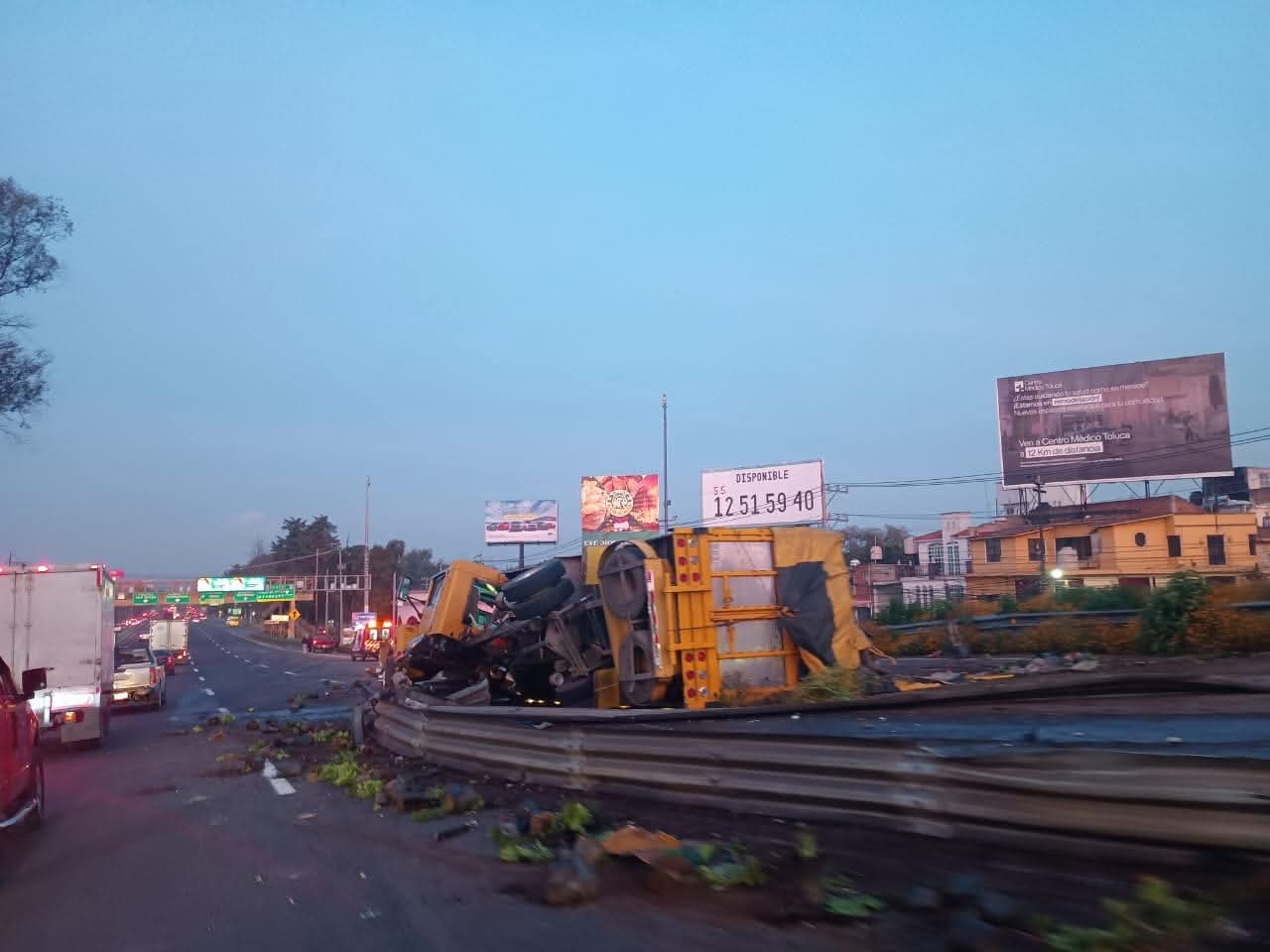 CDMX.- La mañana de este jueves, un camión se volcó sobre la carretera México – Toluca a la altura del municipio de Lerma, provocando graves afectaciones viales.