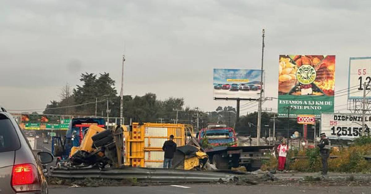 CDMX.- La mañana de este jueves, un camión se volcó sobre la carretera México – Toluca a la altura del municipio de Lerma, provocando graves afectaciones viales.
