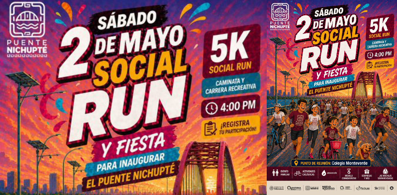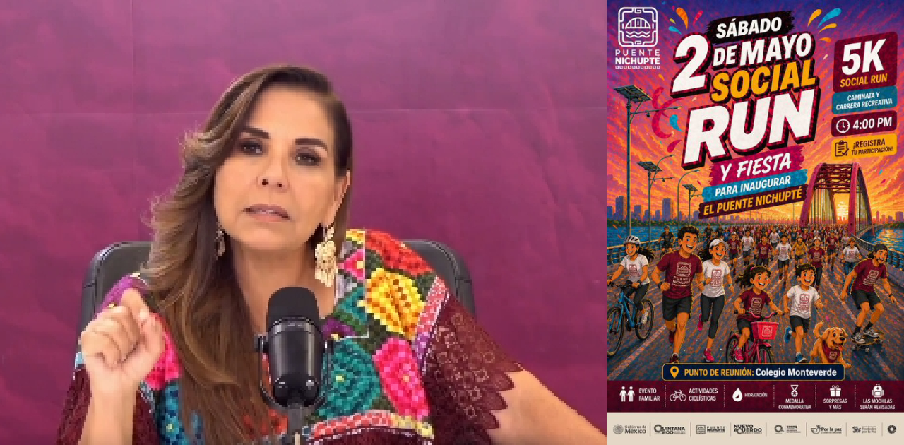 Chetumal, Quintana Roo.- La gobernadora Mara Lezama Espinoza anunció en la “Voz del Pueblo” la apertura de inscripciones para la carrera recreativa “Run Social”, que se llevará a cabo el 2 de mayo como parte de la inauguración del Puente Nichupté, evento que contará con la presencia de la presidenta Claudia Sheinbaum.
