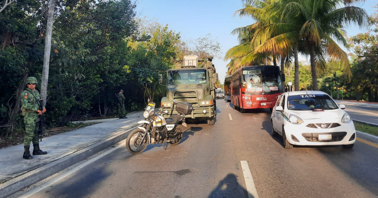 Aunque no se precisó el punto en que quedó la unidad de la Secretaría de la Defensa Nacional (SEDENA), reportes de ciudadanos en redes sociales establecieron que la reducción a un carril en el acceso a la zona hotelera del lado de la laguna Nichupté fue de varios kilómetros.