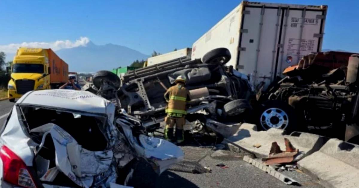 Equipos de Protección Civil, Guardia Nacional y Cruz Roja se desplazaron para asistir a los tripulantes, confirmando al menos tres personas lesionadas y varios vehículos de carga volcados.