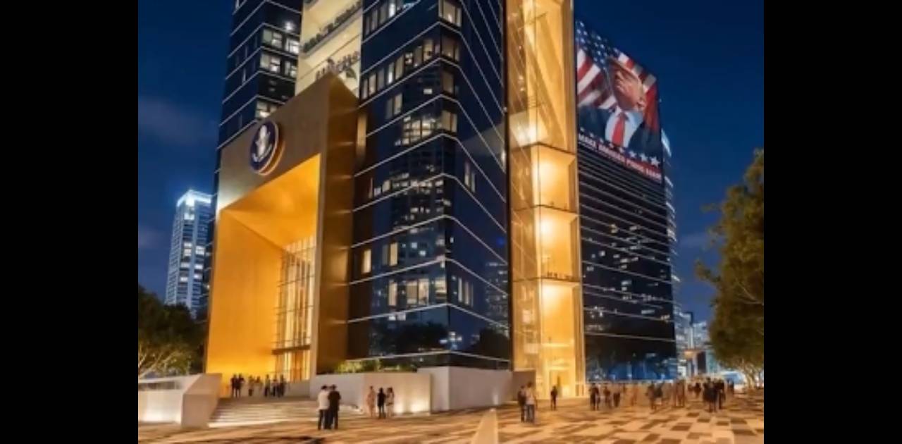 El diseño está compuesto por una estatua gigante dorada del propio Trump presidiendo espacios interiores, lujosas escaleras mecánicas y acabados ostentosos, en un edificio de 47 pisos, en alusión a su posición como presidente número 47.