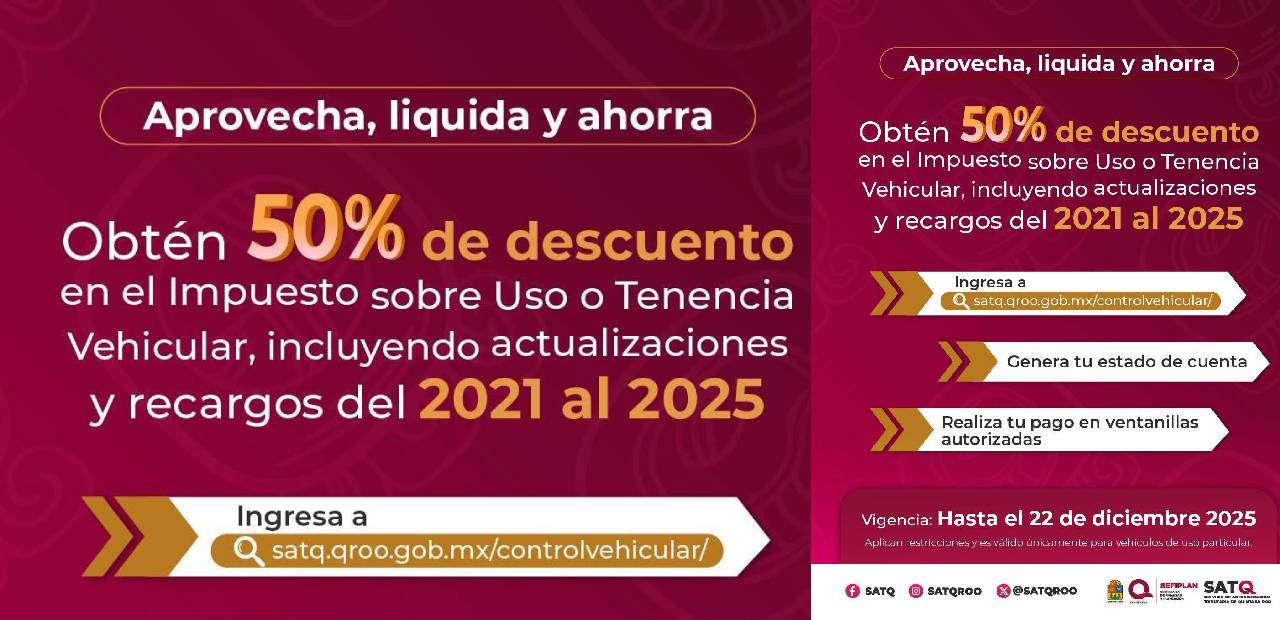 Mara Lezama detalló que los contribuyentes interesados en aprovechar este beneficio pueden acudir directamente al Servicio de Administración Tributaria de Quintana Roo (SATQ), así como ingresar a la página oficial o comunicarse a los teléfonos de atención, donde recibirán orientación sobre los requisitos y el proceso a seguir.