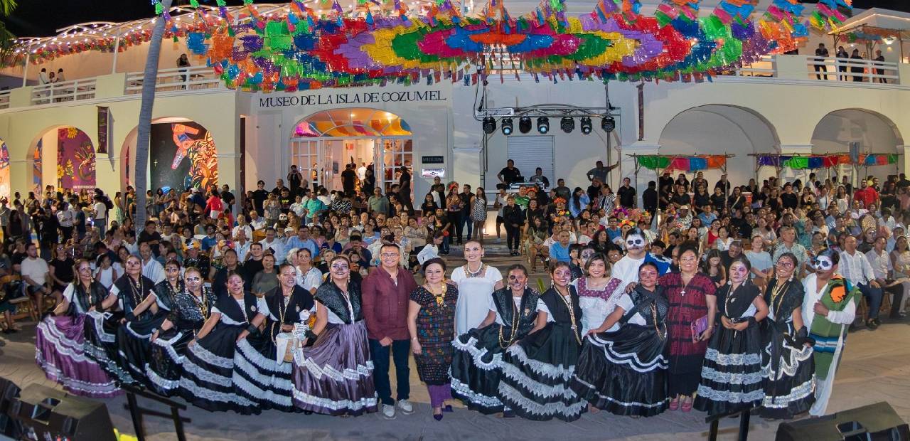 Una de las celebraciones más emblemáticas de México, se realizó frente al Museo de la Isla, con la representación de la “Llegada de las Almas”, a cargo de la agrupación Canoa Maya Cozumel, en un simbólico recorrido espiritual como parte del festival.