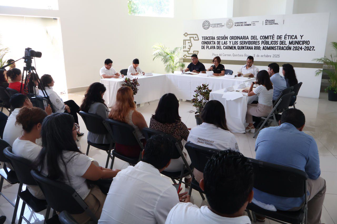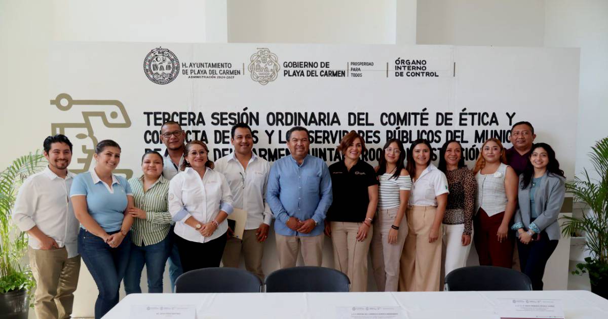 Playa del Carmen.- El día 03 de Octubre, con el fin de fortalecer la confianza ciudadana y consolidar instituciones transparentes, la titular del Órgano Interno de Control Cristina Alcérreca Manzanero, en representación de la presidenta Estefanía Mercado, presidió la Tercera Sesión Ordinaria del Comité de Ética y Conducta de las y los Servidores Públicos, marco en el que rindió un informe de actividades.