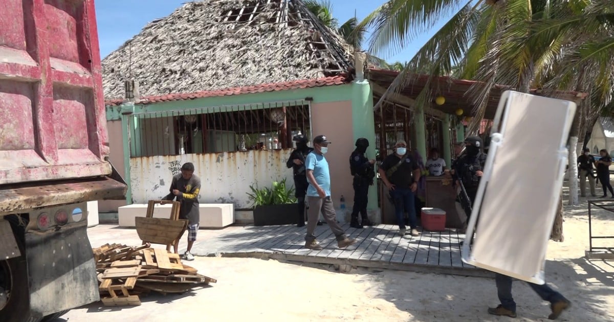 Alrededor de las 9 de la mañana, los elementos de seguridad estatal y federal se coordinaron para limpiar las playas de camastros, y retirar a quienes no tienen concesión.