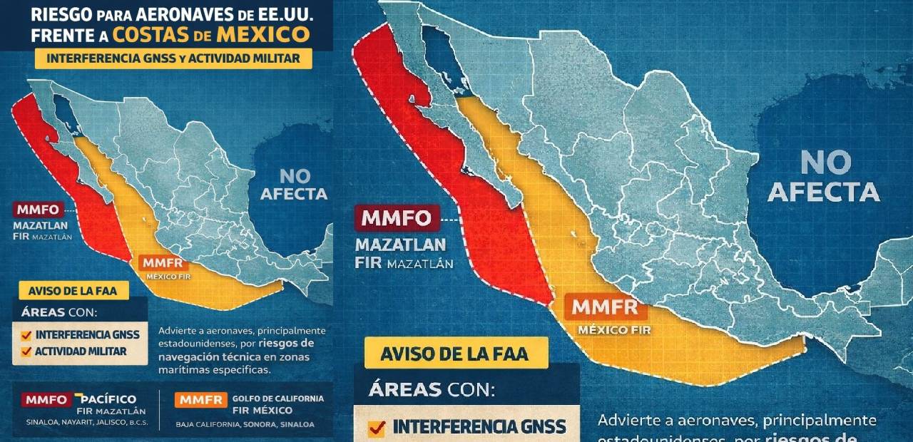 Washington.- La Administración Federal de Aviación de Estados Unidos (FAA) emitió el día de ayer una alerta de seguridad para vuelos civiles que cubren amplias zonas del espacio aéreo sobre el océano Pacífico, México, Centroamérica y partes de Sudamérica, advirtiendo de una “situación potencialmente peligrosa” debido a las actividades militares e interferencias en los sistemas de navegación satelital (GPS).