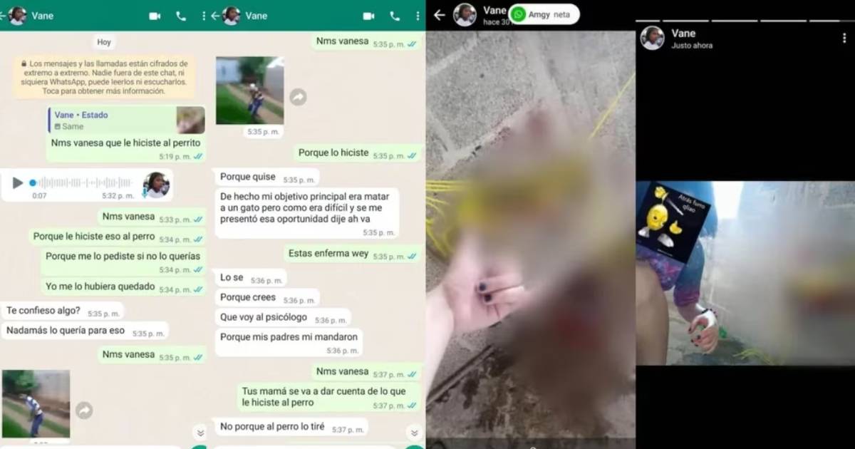 Según las capturas de pantalla, Vanessa “N” mató al perrito a sangre fría, lo amarró y le realizó cortes en el cuerpo para que se desangrara. La presunta maltratadora quería al perro para dañarlo, en el mismo chat le explicó a su compañera por qué lo hizo.