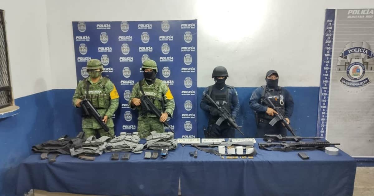 El gobernador de Quintana Roo destacó la actuación de la Secretaría de Seguridad Pública, la Fiscalía General del Estado, la Secretaría de la Defensa Nacional, Marina, Guardia Nacional, integrados al Grupo de Coordinación para la Construcción de la Paz y Seguridad, quienes detuvieron a 15 sujetos, catearon tres inmuebles, aseguraron drogas, armas y cartuchos, involucrados y usados en hechos violentos en el bar “La Malquerida”.