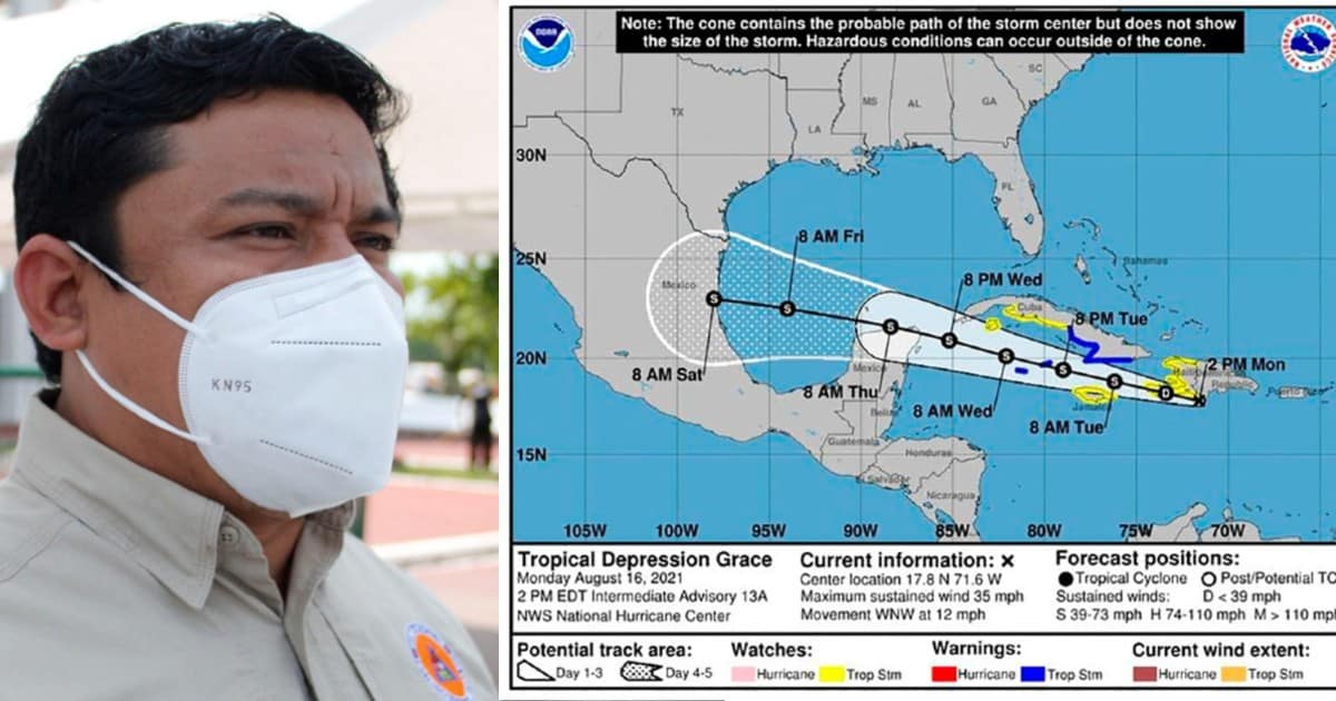 Cancún.- Adrián Martínez Ortega, director general de la Coordinación Estatal de Protección Civil, informó que la depresión tropical “Grace” por sus características y las condiciones que la rodean no representaría mayor riesgo a Quintana Roo, a pesar de que la zona norte está en su ruta.