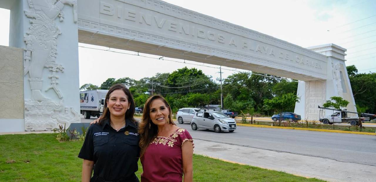Playa del Carmen.- La gobernadora Mara Lezama y la presidenta municipal Estefania Mercado inauguraron el nuevo Arco de Acceso Norte de Playa del Carmen, obra que representa identidad, modernidad y seguridad para la ciudad.