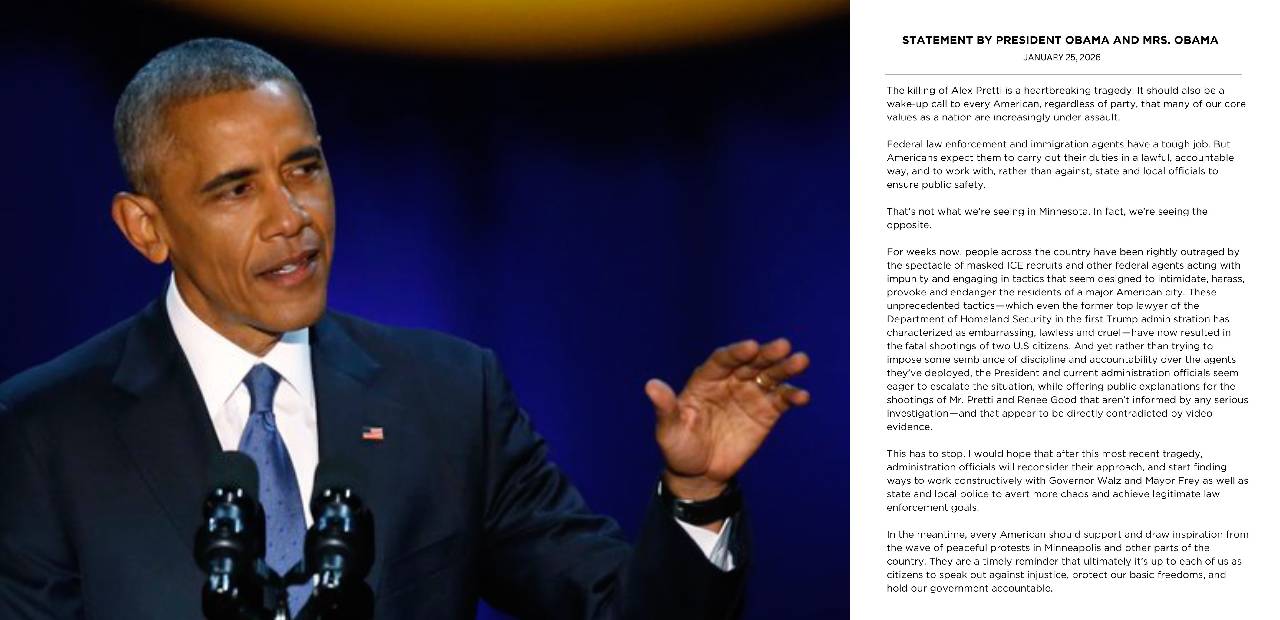 Washington.- Barack Obama y su esposa Michelle, el día de ayer emitieron un comunicado conjunto en el que califican como “una tragedia desgarradora” la muerte de Alex Pretti, un enfermero de 37 años que fue abatido por agentes federales en Minneapolis, Minnesota.