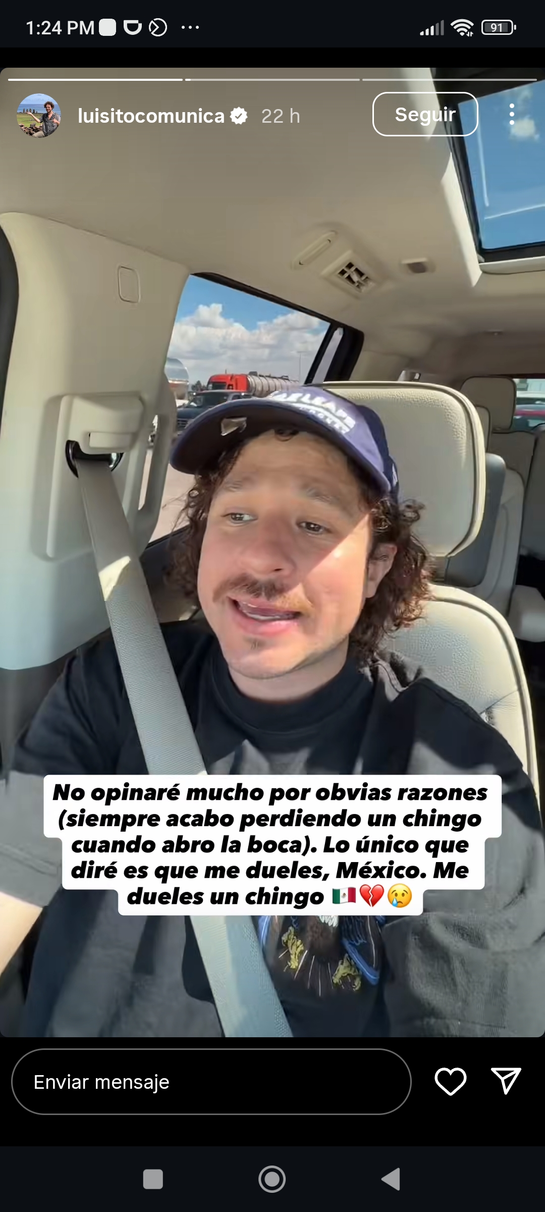 Uno de los primeros en pronunciarse fue Luisito Comunica, quien a través de sus historias de Instagram compartió su consternación por el asesinato de Manzo.