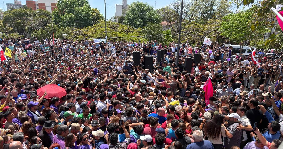 Cerca de las 12, el presidente Milei llegó a la esquina de la plaza Belgrano, en el cruce de las calles French y Paraguay, en medio de un fuerte operativo de seguridad coordinado entre las fuerzas federales y la policía local.