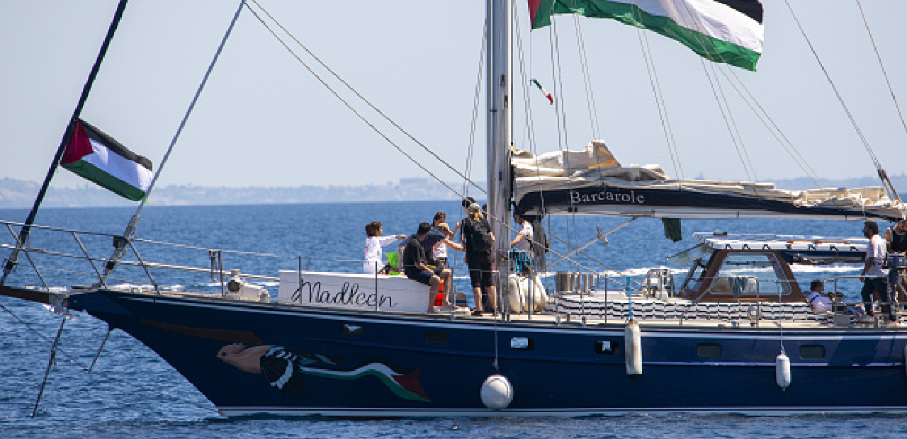 La flotilla ha entrado en aguas de exclusión frente al enclave palestino, su detención en aguas internacionales sería considerado un “acto de pirateria”.