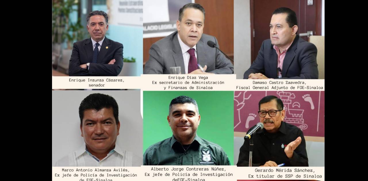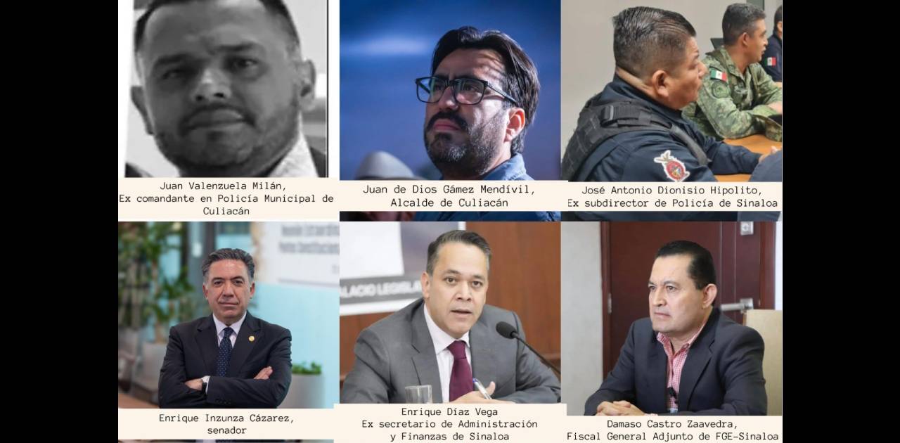 Junto a él, aparece una lista de políticos y funcionarios que, según las acusaciones, habrían mantenido relaciones o colaboraciones con redes del narcotráfico. Entre los nombres señalados se encuentran: Enrique Inzunza Cázarez, Enrique Díaz Vega, Dámaso Castro Zavedra, Marco Antonio Almanza Avilés, Alberto Jorge Contreras Núñez (Cholo), Gerardo Mérida Sánchez, José Antonio Dionisio Hipólito (Tornado), Juan de Dios Gámez Mendívil y Juan Valenzuela Millán (Juanito).