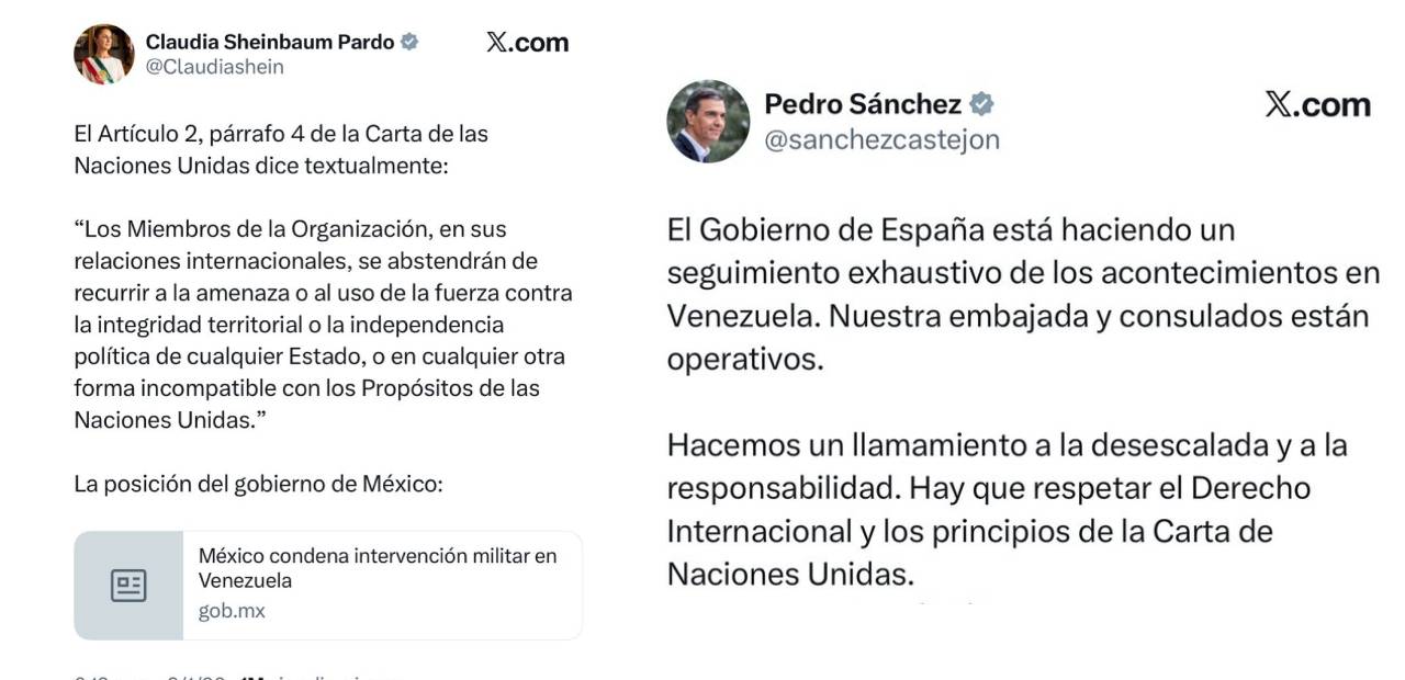 Otros que han usado las redes sociales para marcar una posición son la presidenta de México Claudia Sheinbaum y el presidente de España, Pedro Sanchez que han apelado a la carta de Naciones Unidas.