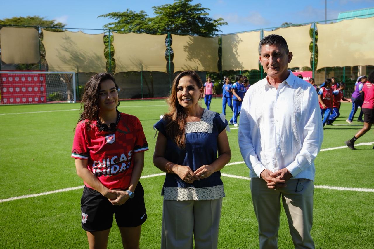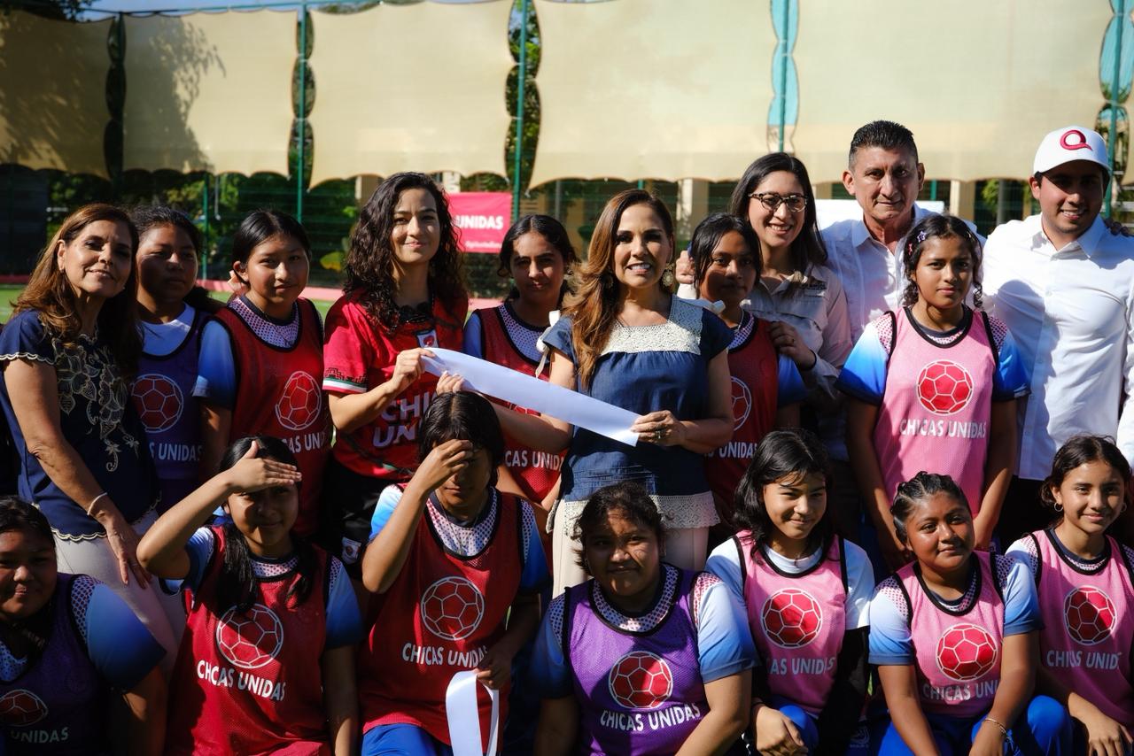 Bacalar.- La gobernadora Mara Lezama Espinosa inauguró el marte 30 de diciembre esta obra histórica. El proyecto resultó de un trabajo coordinado con la organización Girls United y el Ayuntamiento local. Romina Catalayud, fundadora de la organización, acompañó a la mandataria en el evento.