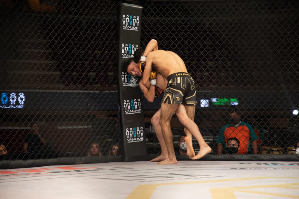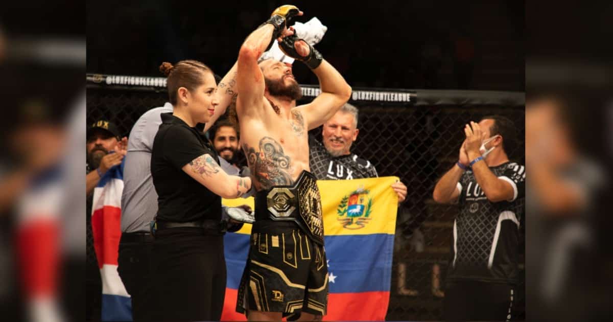 Con una potente llave al cuello “The King” logró frenar a su oponente apenas empezado el encuentro, en el primer round; para coronarse como el nuevo campeón de peso Pluma de la Liga LUX.