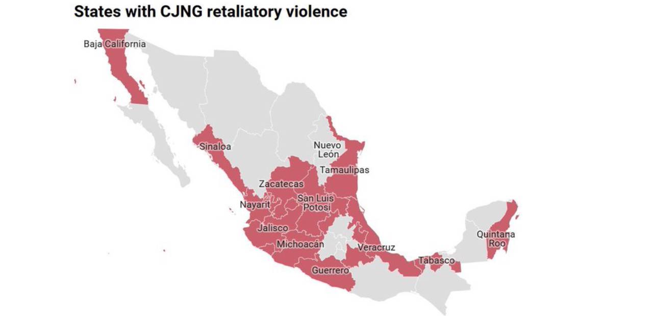 Tras el abatimiento en un operativo federal, se registraron bloqueos carreteros, incendios de vehículos y enfrentamientos en múltiples estados, generando pánico entre la población y alertas de seguridad, incluso por parte de las autoridades estadounidenses.