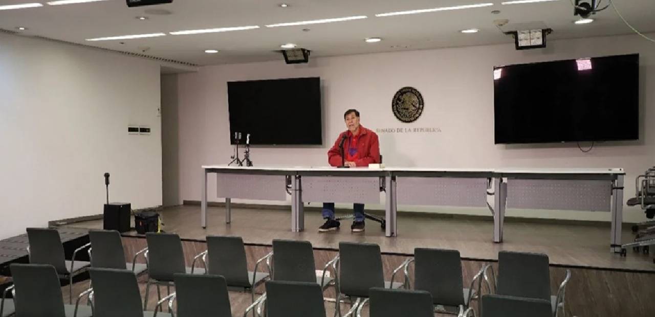 Ciudad de México.- El senador Gerardo Fernández Noroña se queda en un salón vacío sin prensa después de las acusaciones contra Grecia Quiroz.