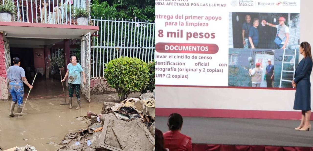 El anunció de la presidenta Claudia Sheinbaum del paquete de 10 000 millones de pesos será para atender a las familias afectadas por las lluvias e inundaciones en los cinco estados afectados.