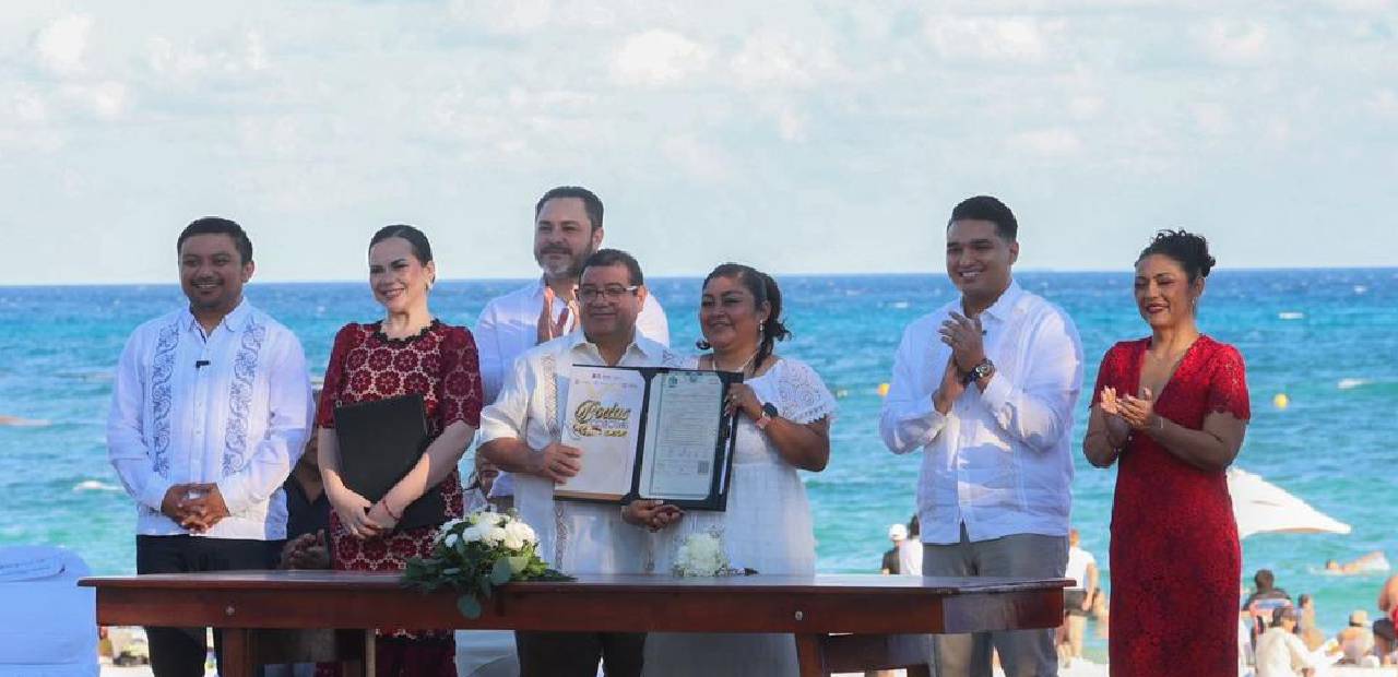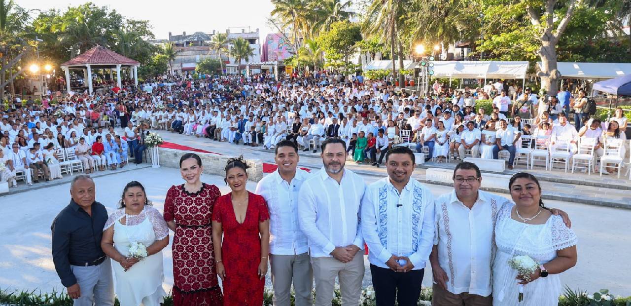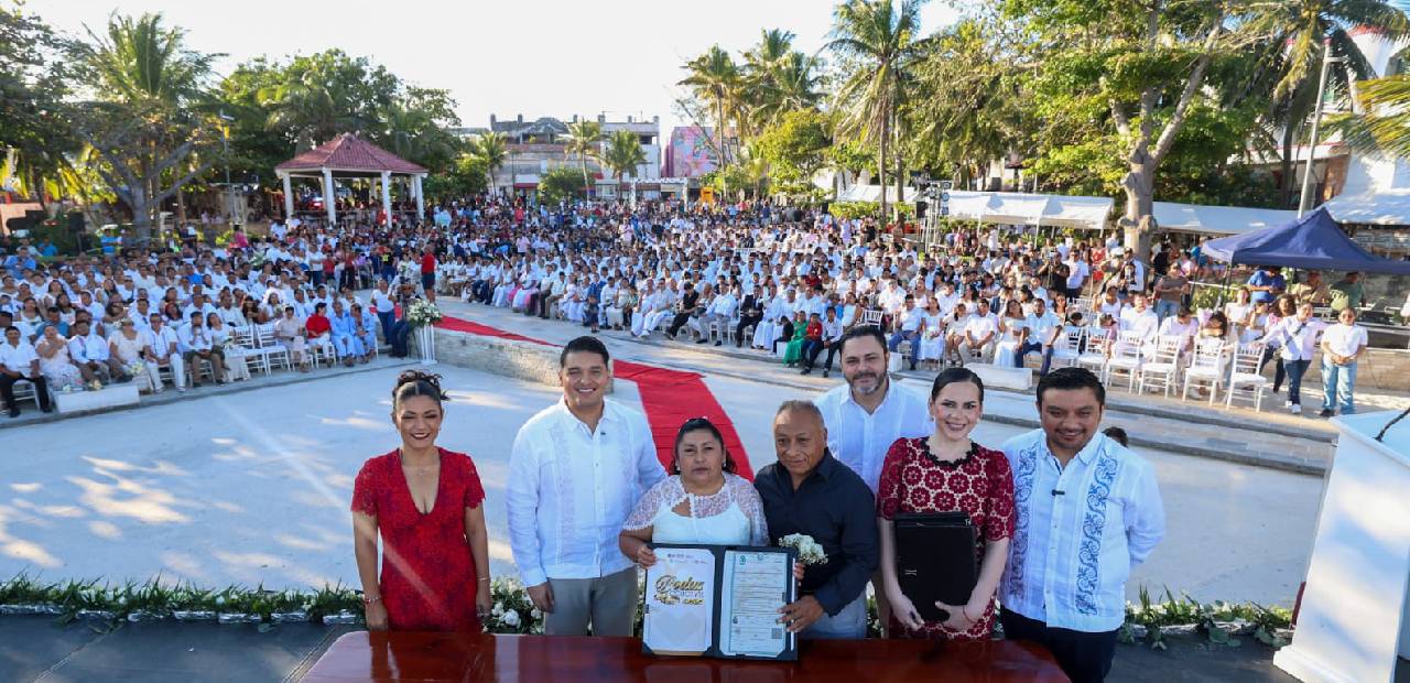 Playa del Carmen, Quintana Roo.- En el corazón del Parque Fundadores, frente al emblemático Portal Maya y con el Caribe como testigo, el Gobierno Municipal de Playa del Carmen, encabezado por la presidenta Estefanía Mercado, celebró las Bodas Colectivas 2026, donde 314 parejas contrajeron matrimonio civil en una jornada marcada por al emoción y la esperanza.