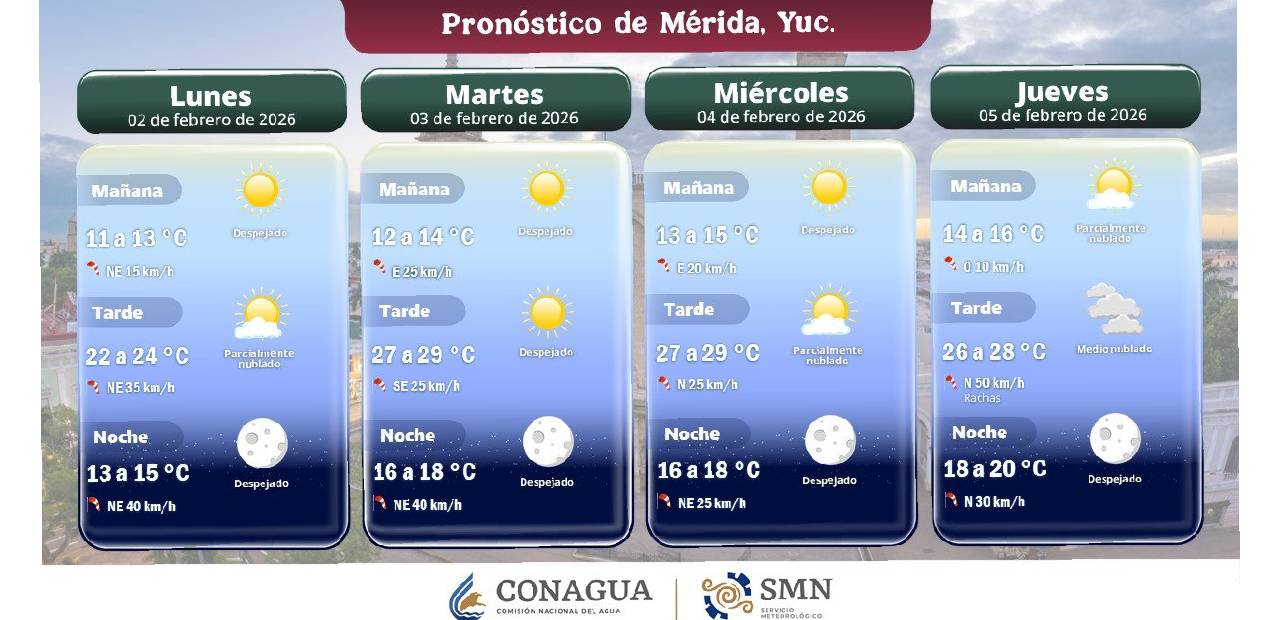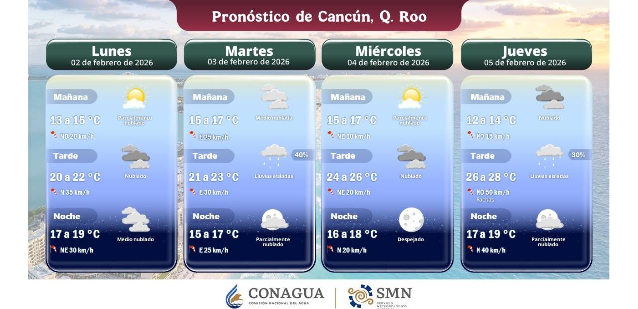 Playa del Carmen, Quintana Roo.- Para la Península de Yucatán se pronostica cielo medio nublado durante el día, con lluvias ligeras y aisladas en Yucatán y Quintana Roo, mientras que en Campeche no se esperan precipitaciones relevantes.