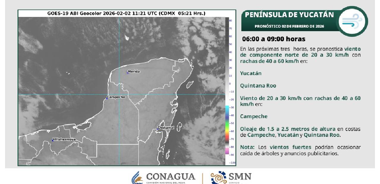 Playa del Carmen, Quintana Roo.- Para la Península de Yucatán se pronostica cielo medio nublado durante el día, con lluvias ligeras y aisladas en Yucatán y Quintana Roo, mientras que en Campeche no se esperan precipitaciones relevantes.