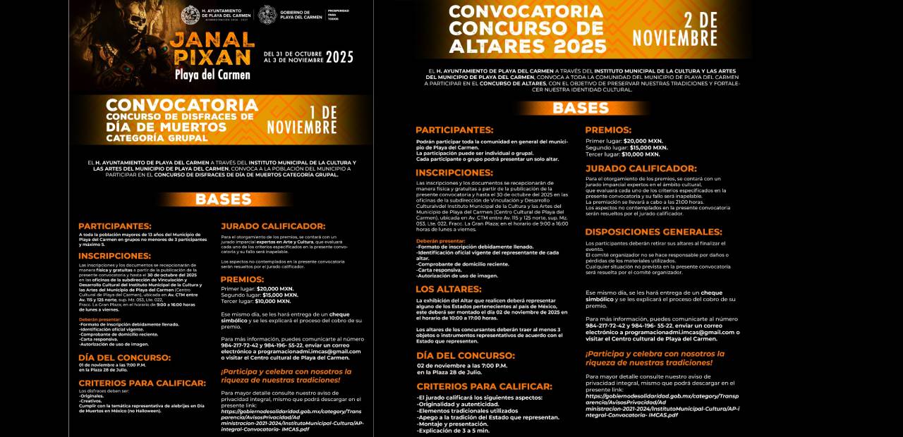 Playa del Carmen.- El Instituto Municipal de la Cultura y las Artes lanzó una cálida invitación a todas las familias playenses para participar en los concursos del Janal Pixan 2025, una de las festividades más queridas de la península que honra a los fieles difuntos con color, creatividad y tradición.