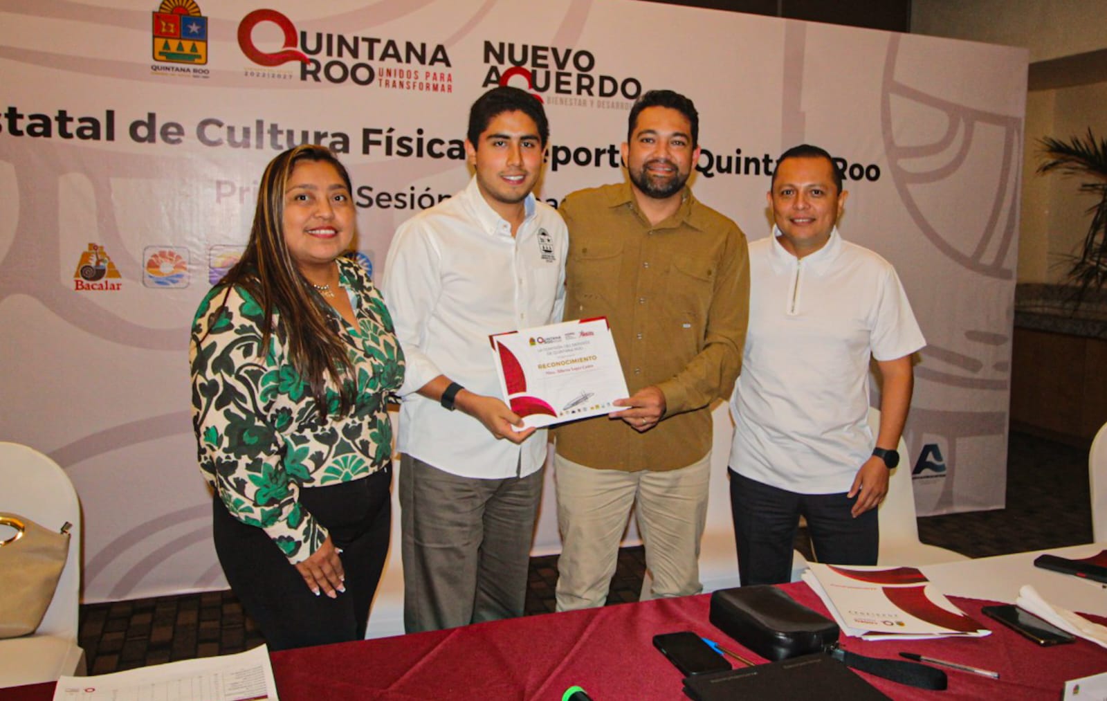 El reconocimiento fue entregado por el Lic. Jacobo Arzate Hop, presidente de la Comisión del Deporte de Quintana Roo, quien destacó el trabajo coordinado entre los municipios para fortalecer las políticas públicas deportivas y promover el desarrollo de nuevos talentos.