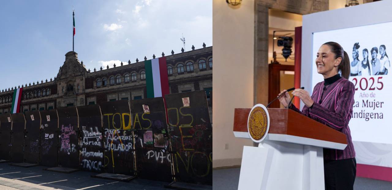 Ciudad de México.- La presidenta Claudia Sheinbaum durante la Conferencia del Pueblo explicó que instalar vallas metálicas alrededor del Palacio Nacional tiene como fin “proteger la vida de las personas” ante las movilizaciones anunciadas por la Coordinadora Nacional de Trabajadores de la Educación (CENTE) y el movimiento de la llamada “Generación Z”.