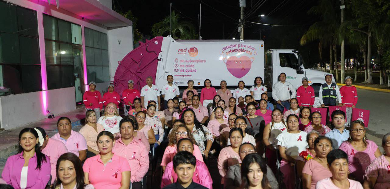 En el marco de la campaña “Que no SENOS olvide”, la presidenta municipal Blanca Merari Tziu Muñoz, el sistema para el Desarrollo Integral para la Familia (DIF) de Puerto Morelos y Red Ambiental organizaron el Encendido Rosa del Palacio Municipal para visibilizar la prevención del cáncer de mama.