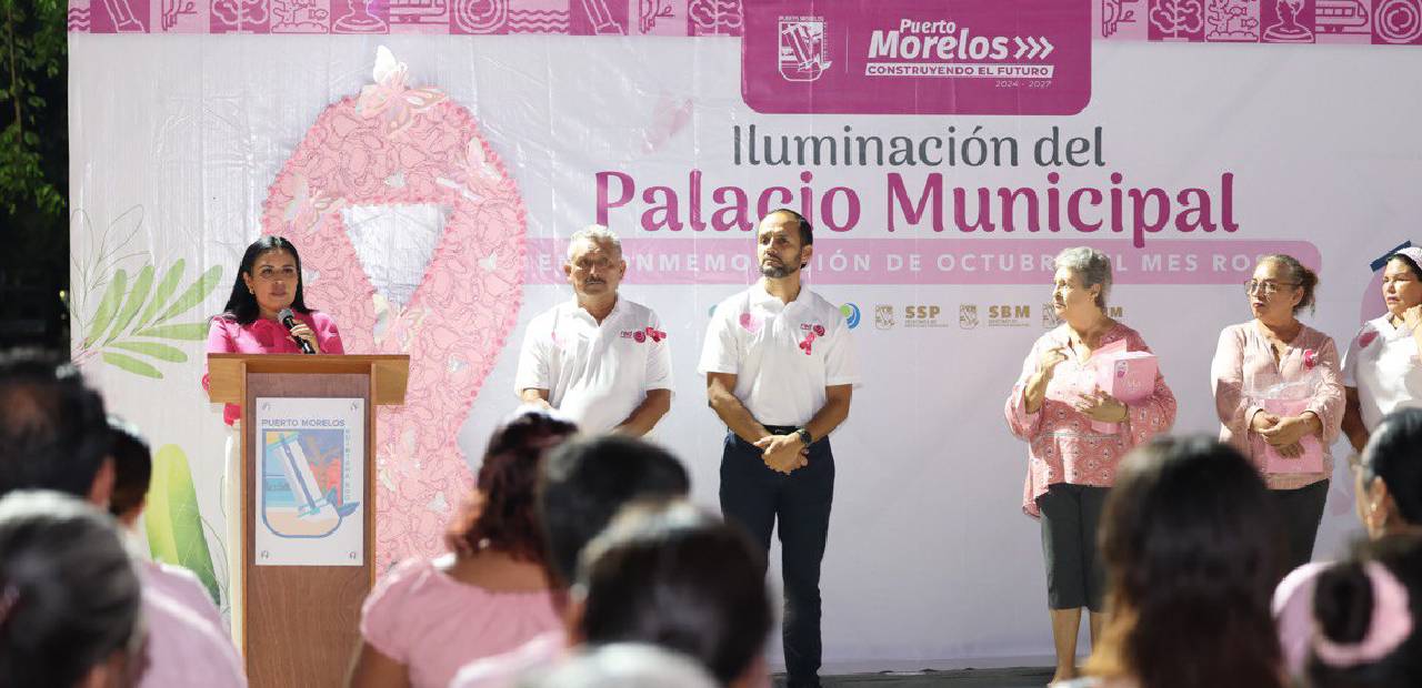 En el marco de la campaña “Que no SENOS olvide”, la presidenta municipal Blanca Merari Tziu Muñoz, el sistema para el Desarrollo Integral para la Familia (DIF) de Puerto Morelos y Red Ambiental organizaron el Encendido Rosa del Palacio Municipal para visibilizar la prevención del cáncer de mama.