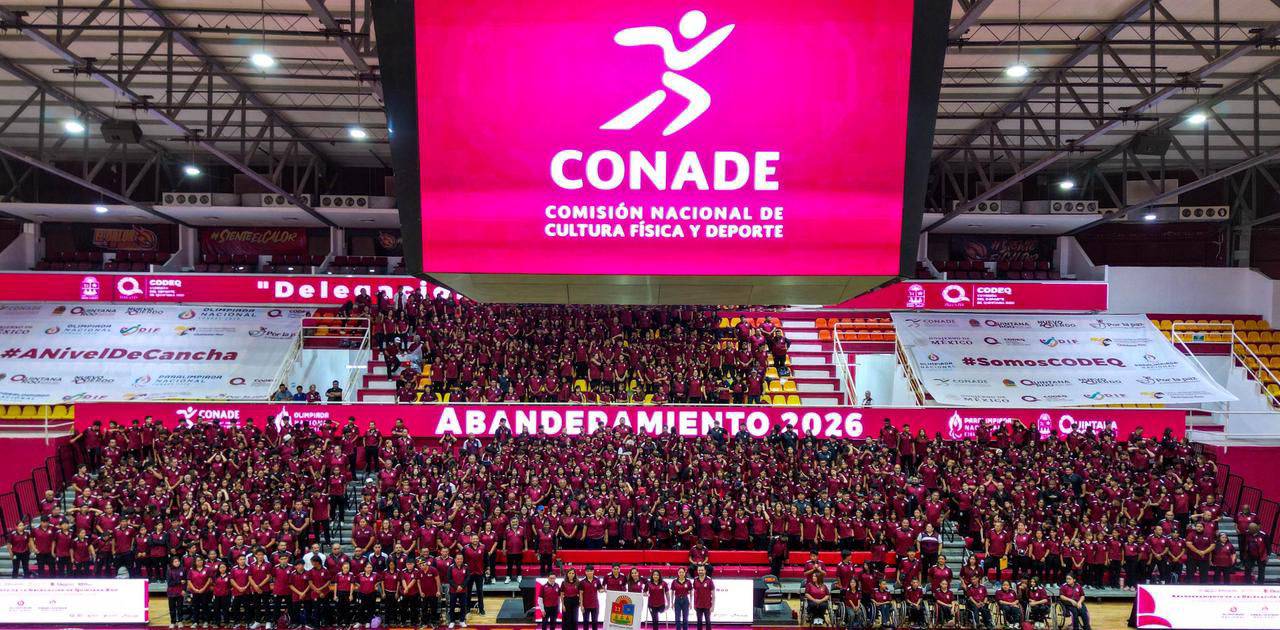 Cancún, Quintana Roo.- La gobernadora Mara Lezama encabezó el día de ayer el abanderamiento de la delegación deportiva más numerosa en la historia del estado, confirmada por más de 800 atletas, paratletas, entrenadores y equipo técnico que participarán en la Olimpiada y Paraolimpiada Nacional CONADE 2026.