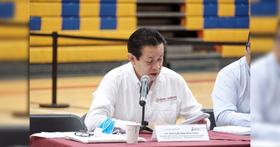 En esta reunión pública informativa para dar a conocer el proyecto del Tramo 5 Norte del Tren Maya, con una longitud de 43.5 kilómetros, que va de Cancún a Playa del Carmen, participan representantes del Fondo Nacional de Fomento al Turismo (Fonatur), como Rafael Villegas Patraca, el biólogo Carlos Llorens Cruset, y de la Secretaría del Medio Ambiente y Recursos Naturales (Semarnat), entre ellos, José Luis Durán Bravo Soto, director de Estudios y Políticas de Cambio Climático y Manejo Ecosistémico.