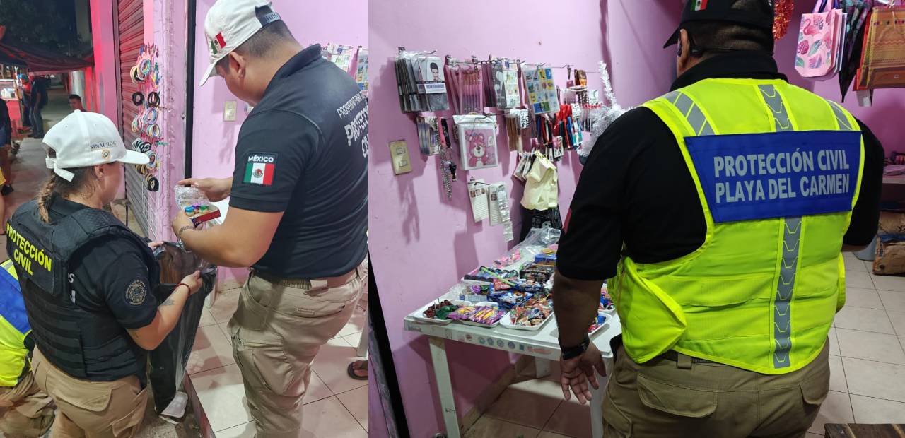 En el marco Operativo Guadalupe-Reyes, la Secretaría de Protección Civil, Prevención de Riesgos y Bomberos mantiene un despliegue permanente para inhibir una actividad que no está permitida en Playa del Carmen y que representa un alto riesgo para la población, especialmente durante las celebraciones decembrinas.