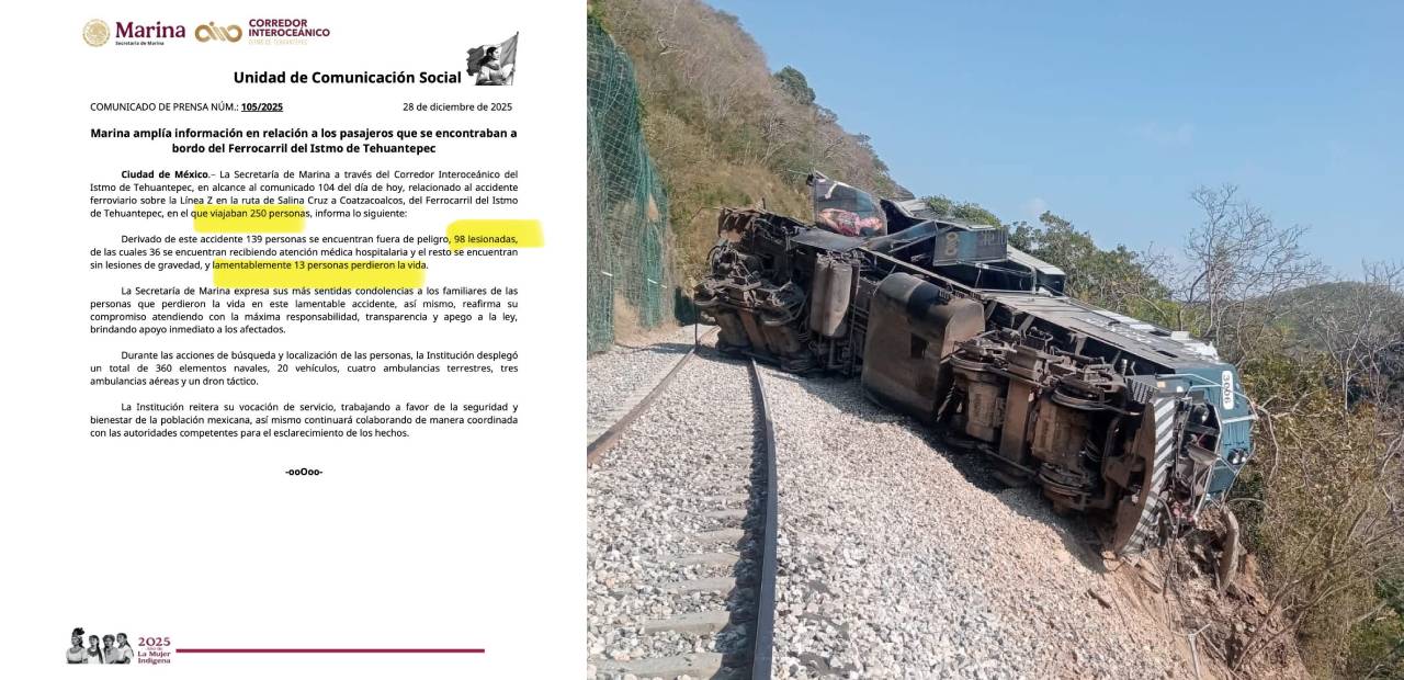 Según la Secretaría de Marina (Semar), el tren transportaba alrededor de 250 personas, incluyendo 241 pasajeros y nueve tripulantes, cuando la máquina principal se descarriló. El impacto provocó que varios vagones volcaron y que los pasajeros fueran expulsados o cayeran hacia un talud cercano, lo que complicó las labores de rescate y atención en el sitio.