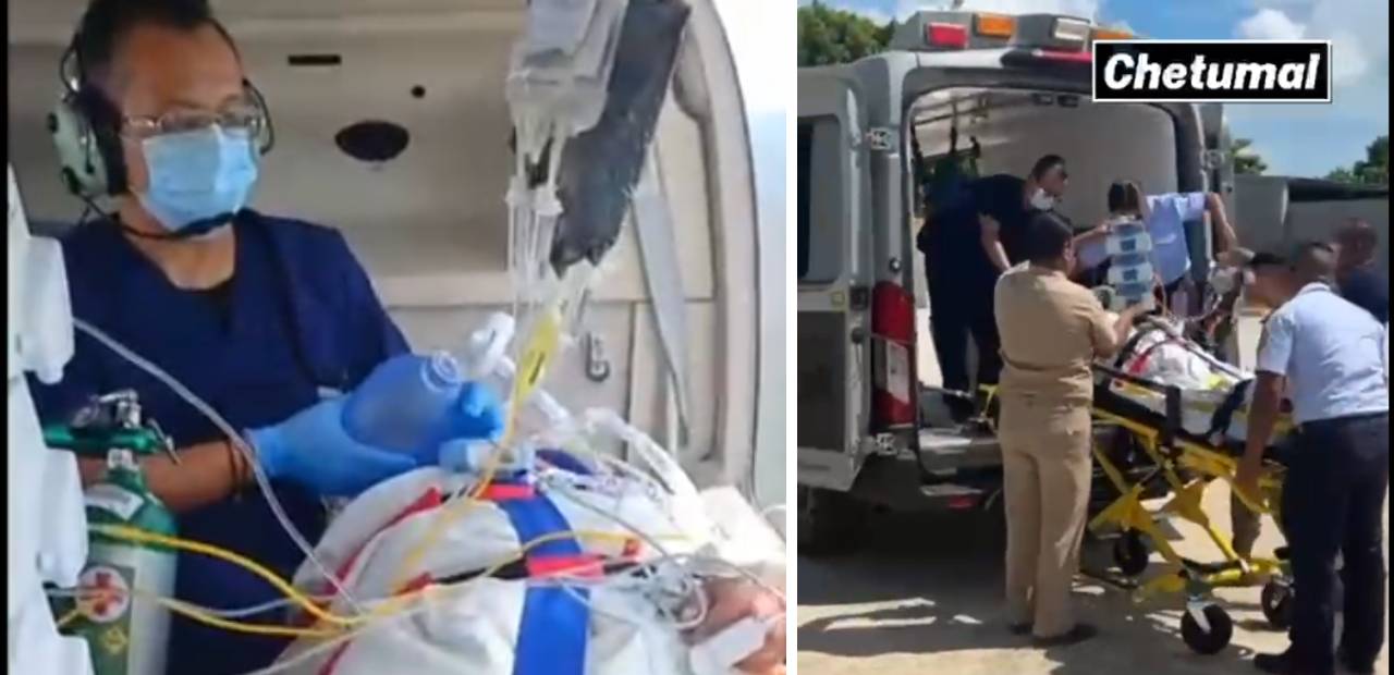 En coordinación con la Secretaría de Marina, un paciente en estado crítico fue evacuado de Chetumal al Hospital de Mérida a bordo del helicóptero municipal, donde fue estabilizado tras una cirugía de emergencias.