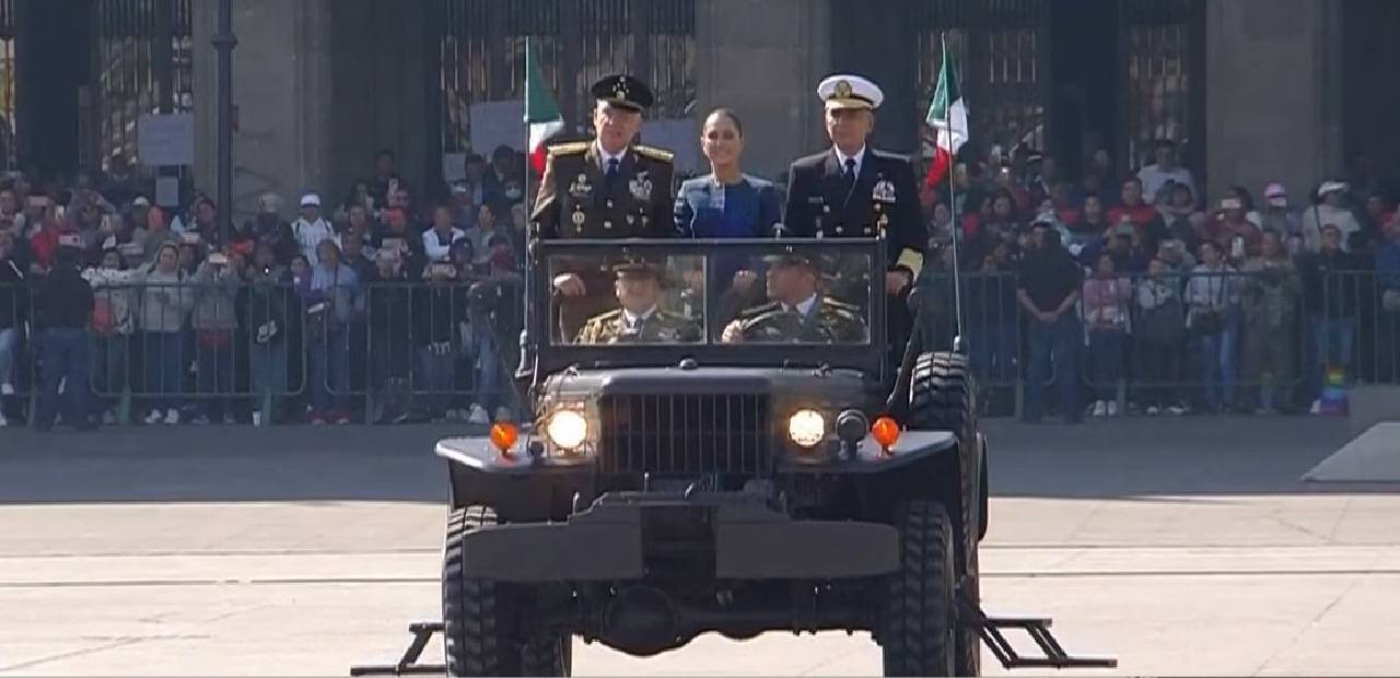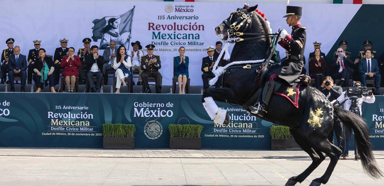 Ciudad de México.- La presidenta de México, Claudia Sheinbaum encabezó el desfile cívico-militar por el 115 aniversario de la Revolución Mexicana, iniciado desde el Zócalo de la Ciudad de México a las 10:00 horas, con izamiento de bandera e inspección de tropas.