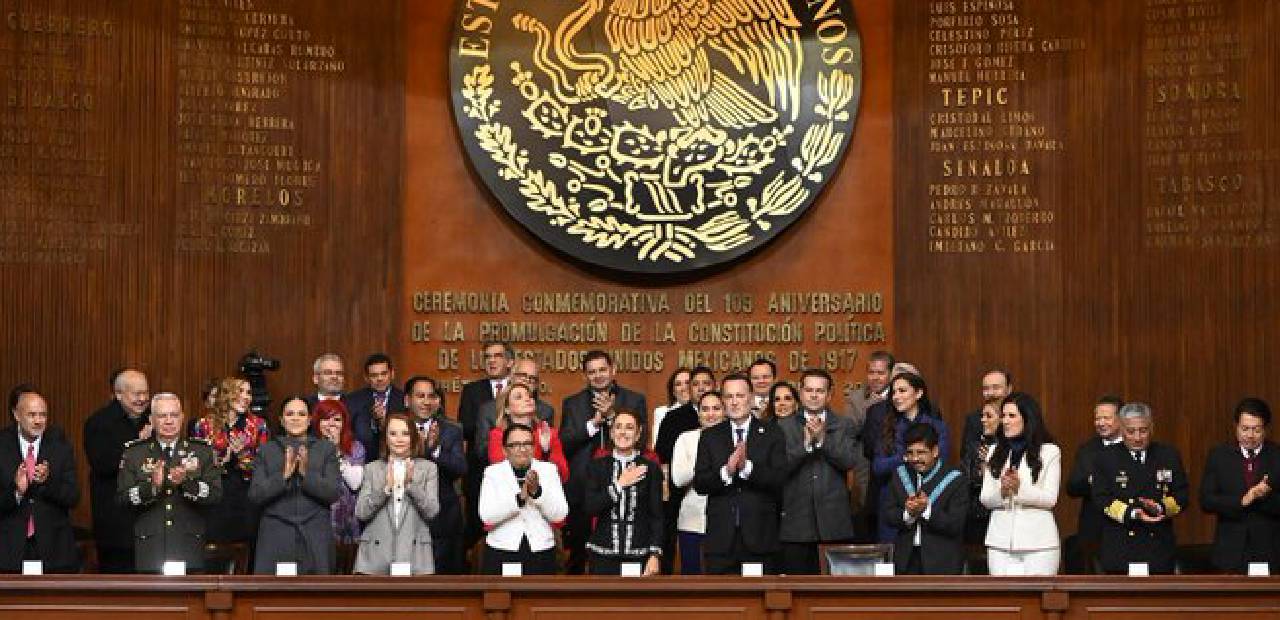 Ciudad de México.- La presidenta Claudia Sheinbaum encabezó la ceremonia por el 109 aniversario de la Constitución de 1917 desde el Teatro de la República en Querétaro, en su discurso afirmó que la Constitución mexicana es fundamental para defender la soberanía nacional y la justicia social y destacó que México no se doblega, no se arrodilla, no se rinde y no se vende.