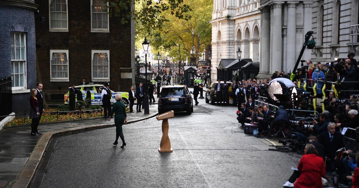 La política hizo una breve declaración ante la residencia de Downing Street antes de acudir al palacio de Buckingham, residencia de la familia real británica, para presentar formalmente su dimisión al rey Carlos III, quien ascendió al trono el 8 de septiembre.