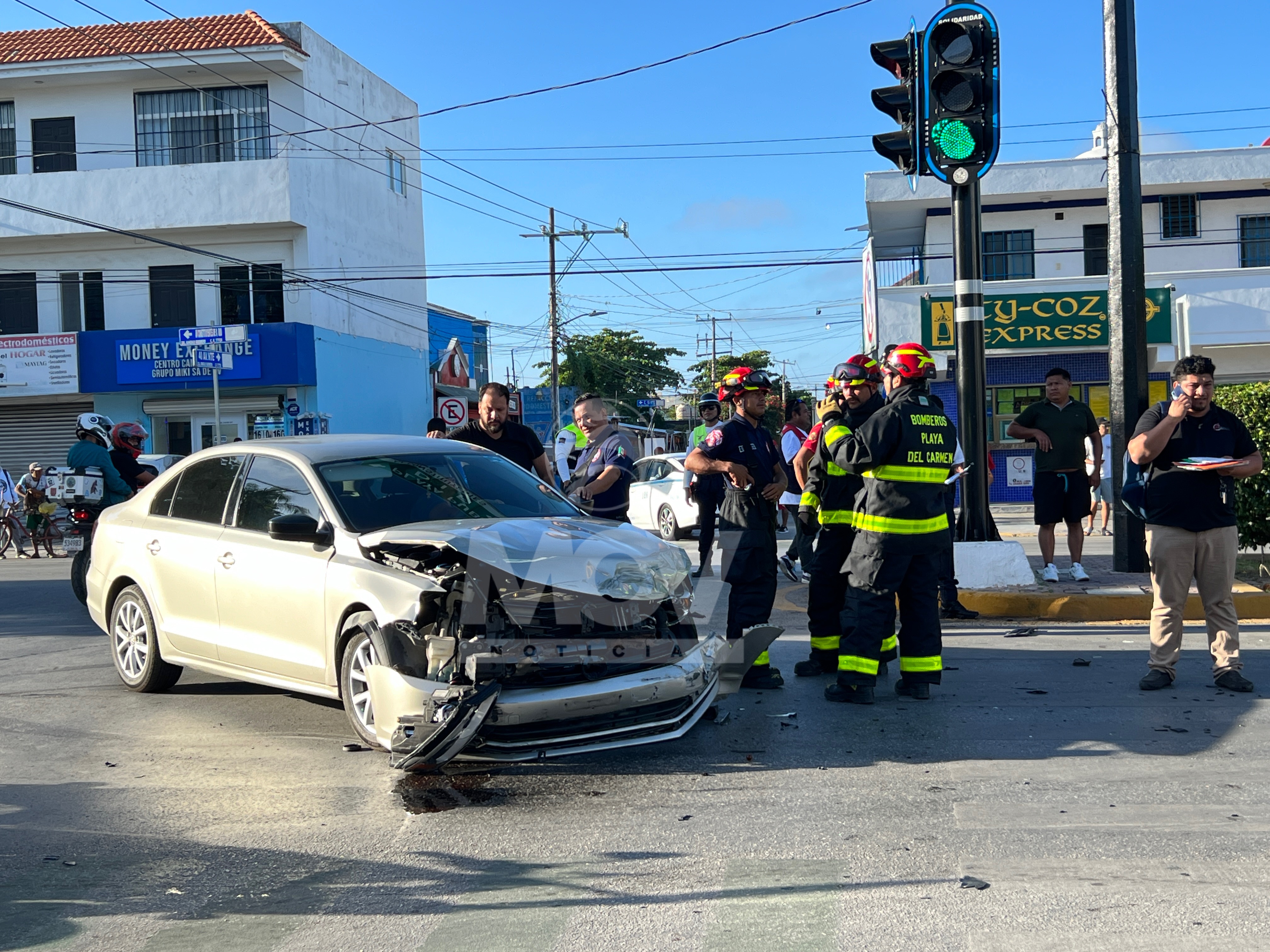 Playa del Carmen.- Alrededor de las 8:30 de la mañana, una Van impactó contra un auto tipo jetta y dejó 4 turistas heridos.
